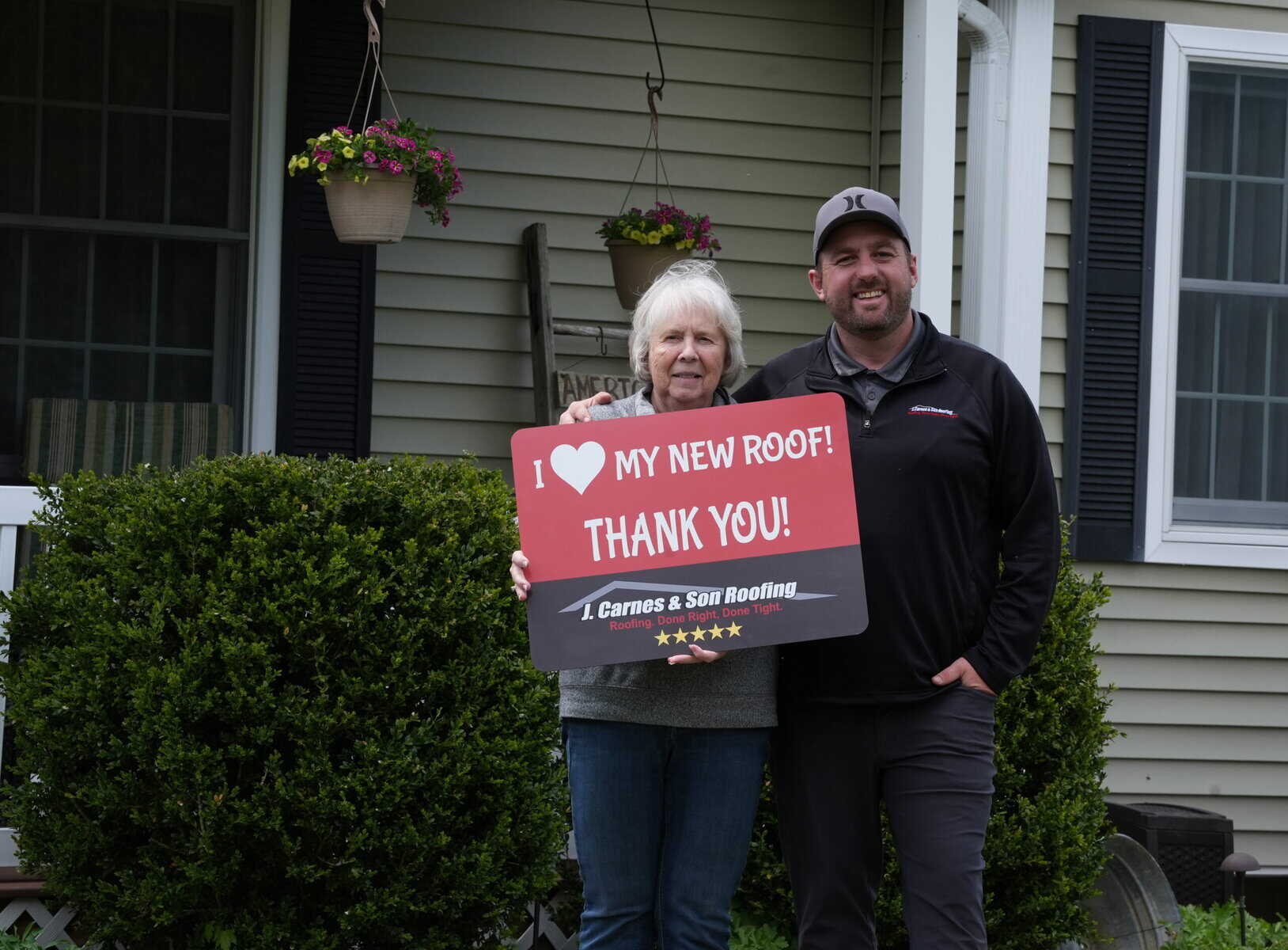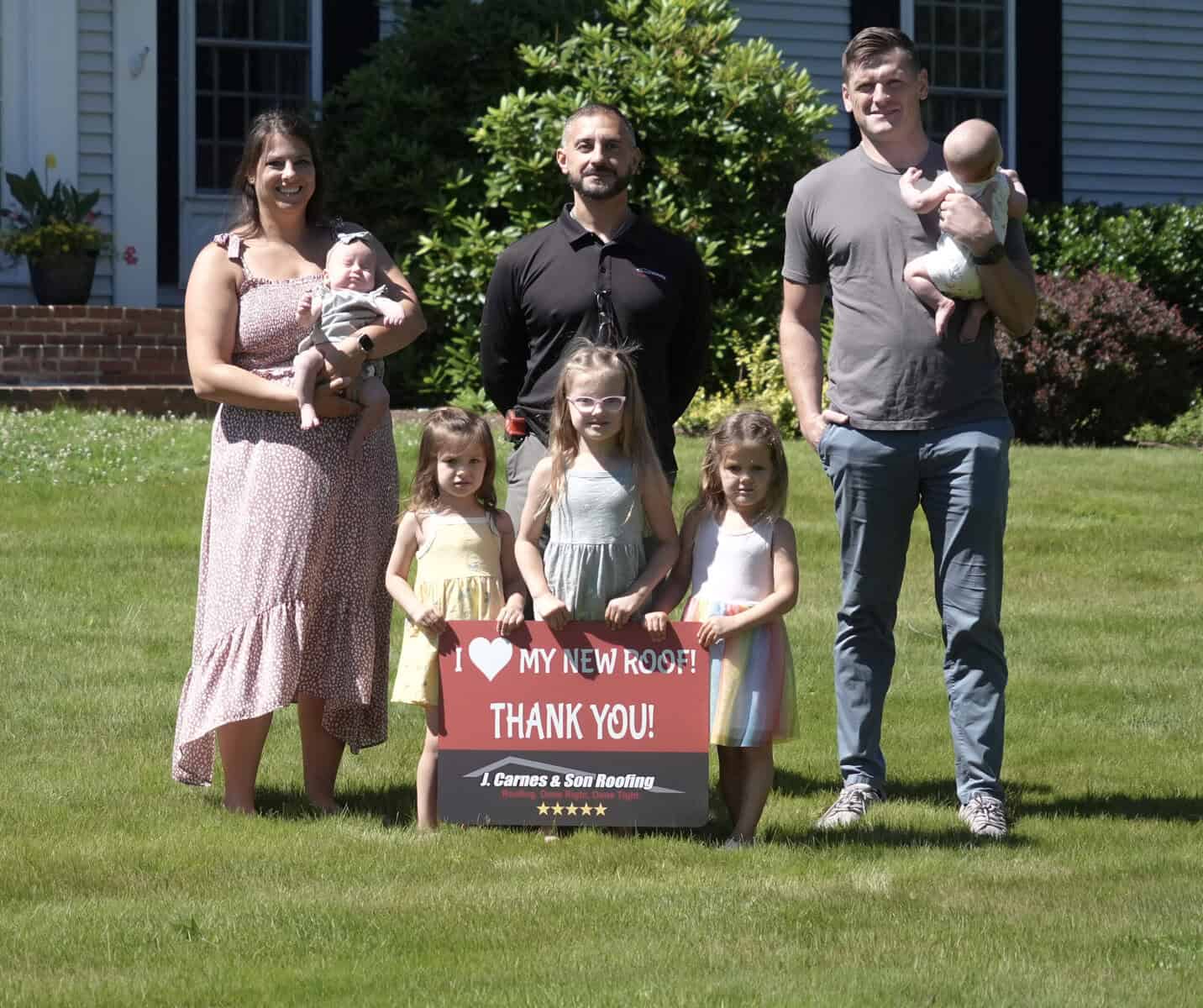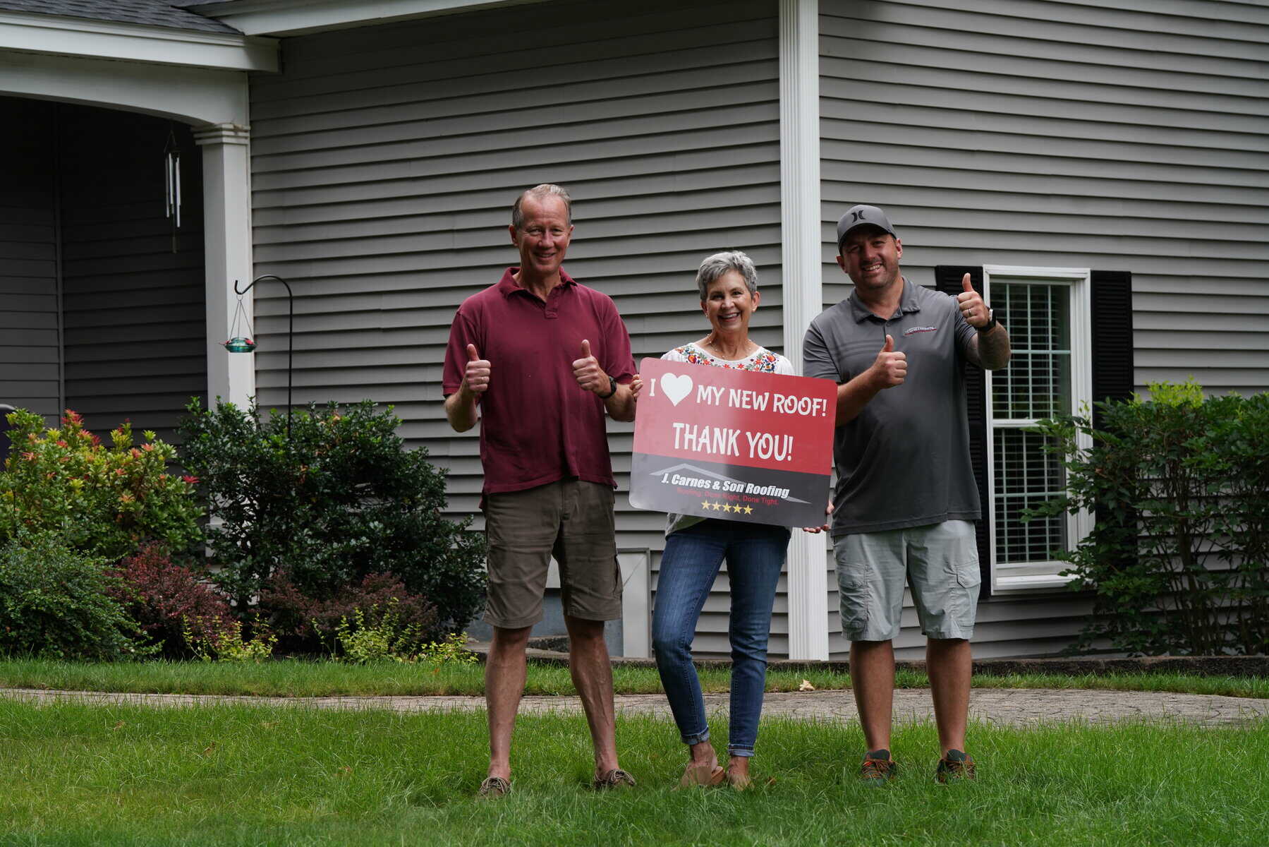 At J. Carnes & Son Roofing, we take pride in delivering top-quality roofing solutions that leave our customers smiling. That’s why we created the “I Love My New Roof™” campaign, a special initiative that showcases the joy and satisfaction of homeowners who have chosen J. Carnes & Son Roofing for their roofing needs. When you work with us, not only do you get a durable and beautiful new roof, but you also become part of our growing family of happy customers. We love to feature our clients proudly holding their “I Love My New Roof™” sign in front of their newly installed roof. It’s our way of saying thank you for trusting J. Carnes & Son Roofing.