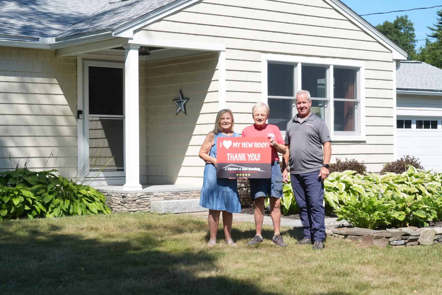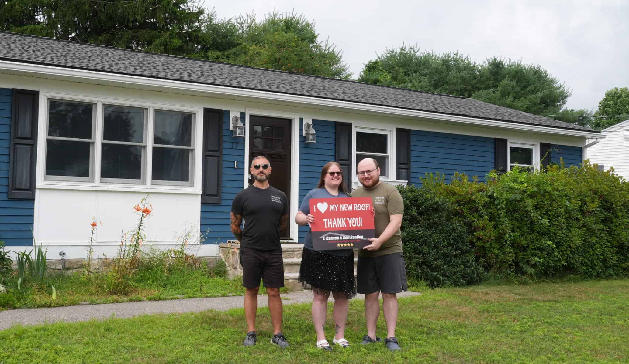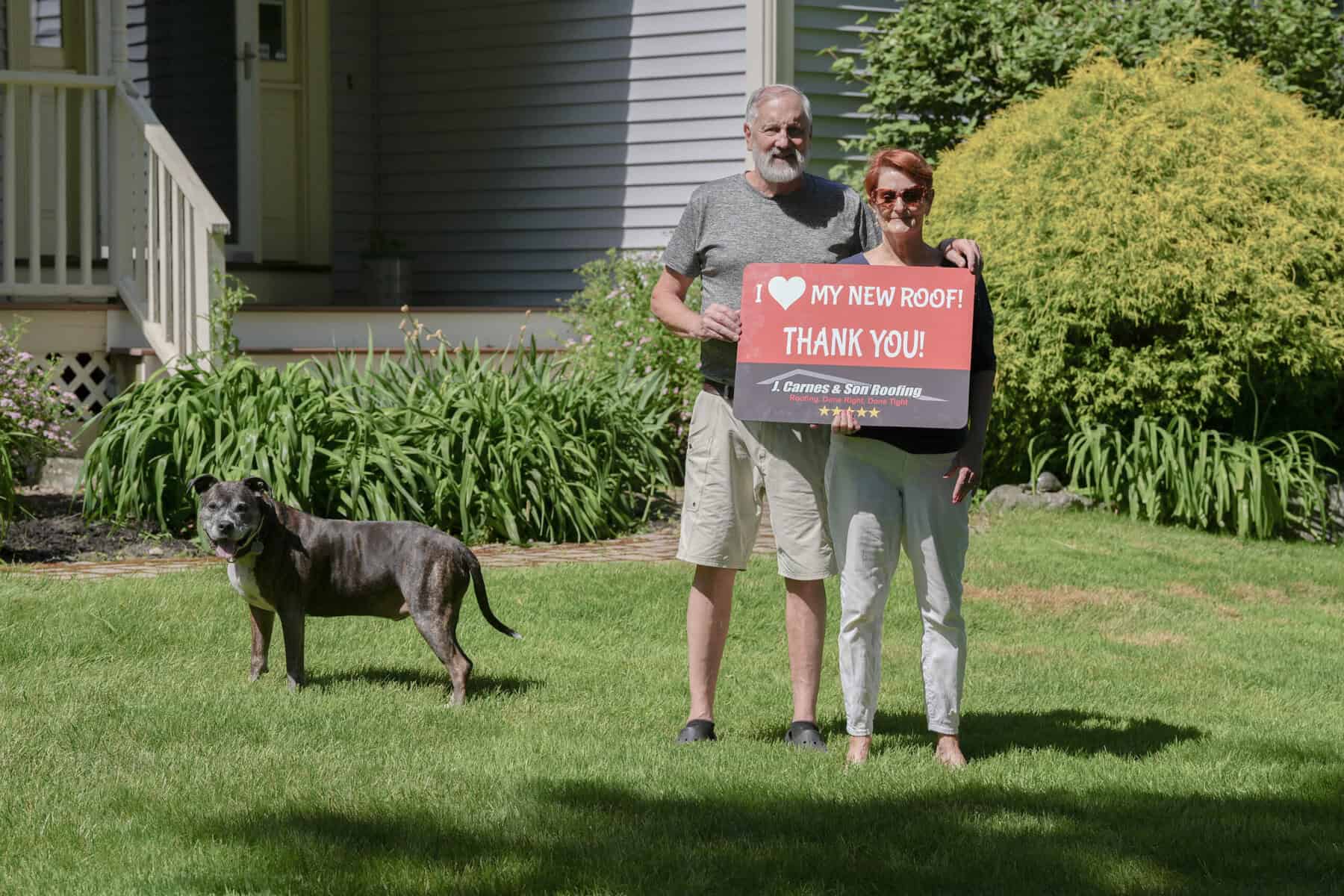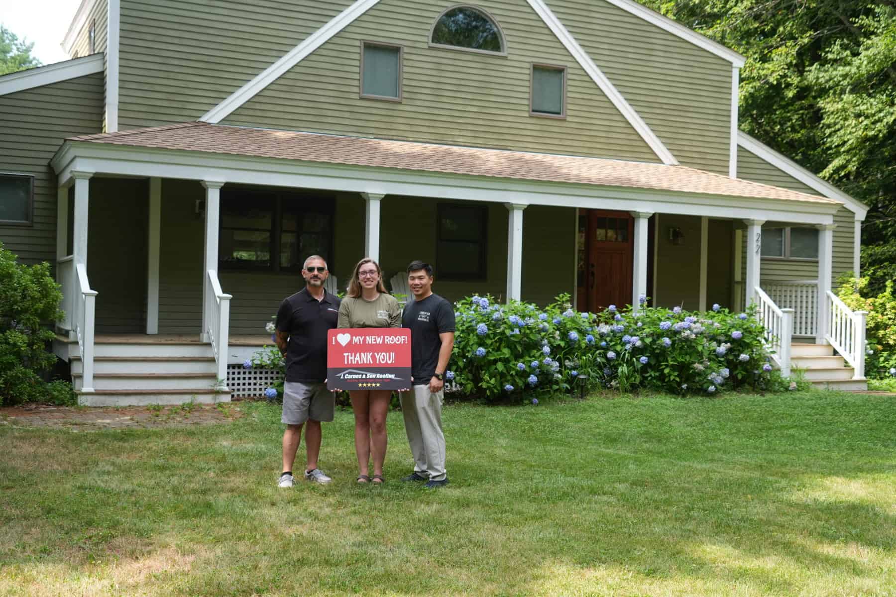 At J. Carnes & Son Roofing, we take pride in delivering top-quality roofing solutions that leave our customers smiling. That’s why we created the “I Love My New Roof™” campaign, a special initiative that showcases the joy and satisfaction of homeowners who have chosen J. Carnes & Son Roofing for their roofing needs. When you work with us, not only do you get a durable and beautiful new roof, but you also become part of our growing family of happy customers. We love to feature our clients proudly holding their “I Love My New Roof™” sign in front of their newly installed roof. It’s our way of saying thank you for trusting J. Carnes & Son Roofing.
